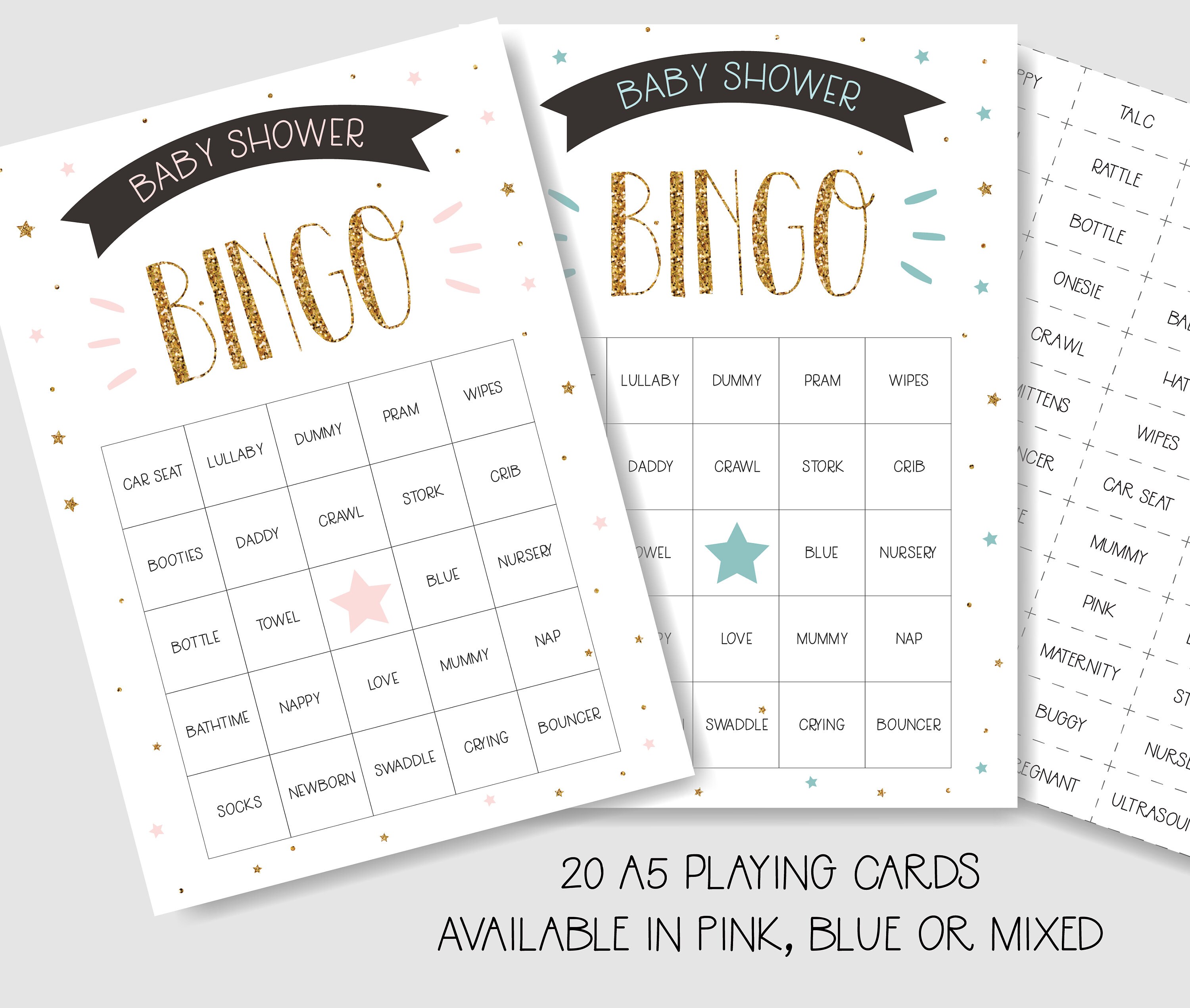 Baby Shower Bingo Game 20 Players Boy Girl Unisex Blue Etsy Denmark