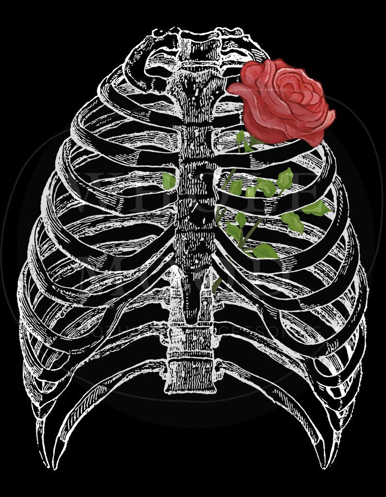 Ribcage With Rose Digital Clipart Skeleton Ribs Chest Etsy